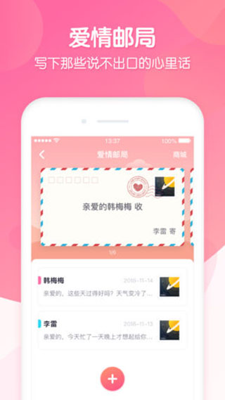 恋爱ing是一款专为恋爱中的人记录恋爱中一点一滴的app,你是不是怕忘掉哪些关键留念日,你是不是有很想要记录的点点滴滴,恋爱ing让大家的恋爱一直ing,此软件实际操作感很顺畅,作用设定的介绍便捷,有诸多小区话题讨论,还能出示许多 类似选购情侣物品定情侣主题酒店餐厅,闲聊中的各种各样暖心小作用,也有特点的每日一句很溫暖文艺范儿使你每日接纳陶冶,能迅速清除缓存和当地闲聊记录,给你节约大量的室内空间,意见反馈难题在线客服漂亮小姐姐能立刻反映给你处理,让给你它不会再苦恼,让大家的恋爱更成功~