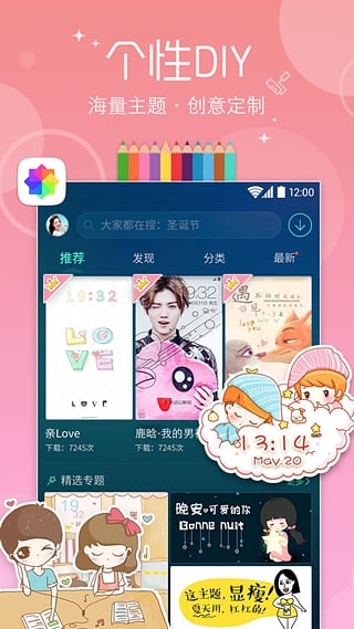 墙纸好于表明手机上主题电脑桌面图标,共享主题和朋友。