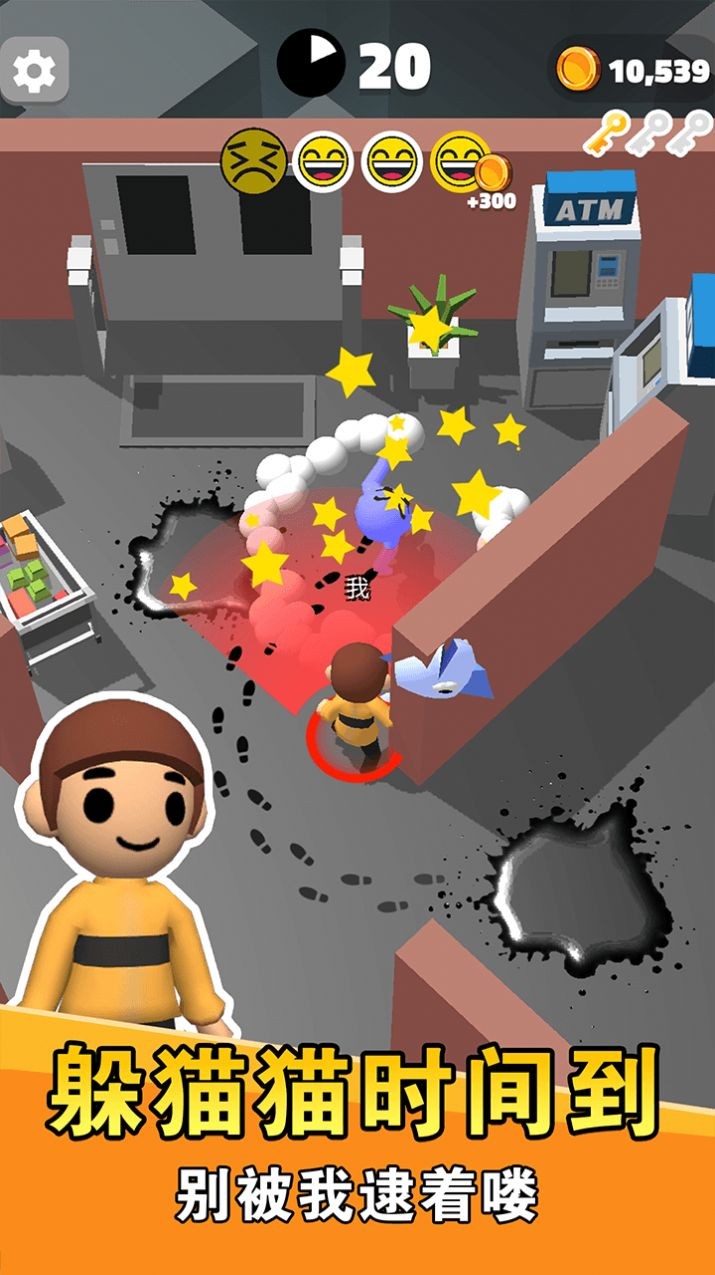 不要被我抓住。游戏的整体操作模式还是很有意思的。你可以自由尝试不同的玩法。想要躲避对手的追击,需要灵活行走,利用好场景中的各种障碍物和建筑,帮助自己躲避敌人的追击,同时可以有足够的时间进行抵抗,收集各种道具和金币。